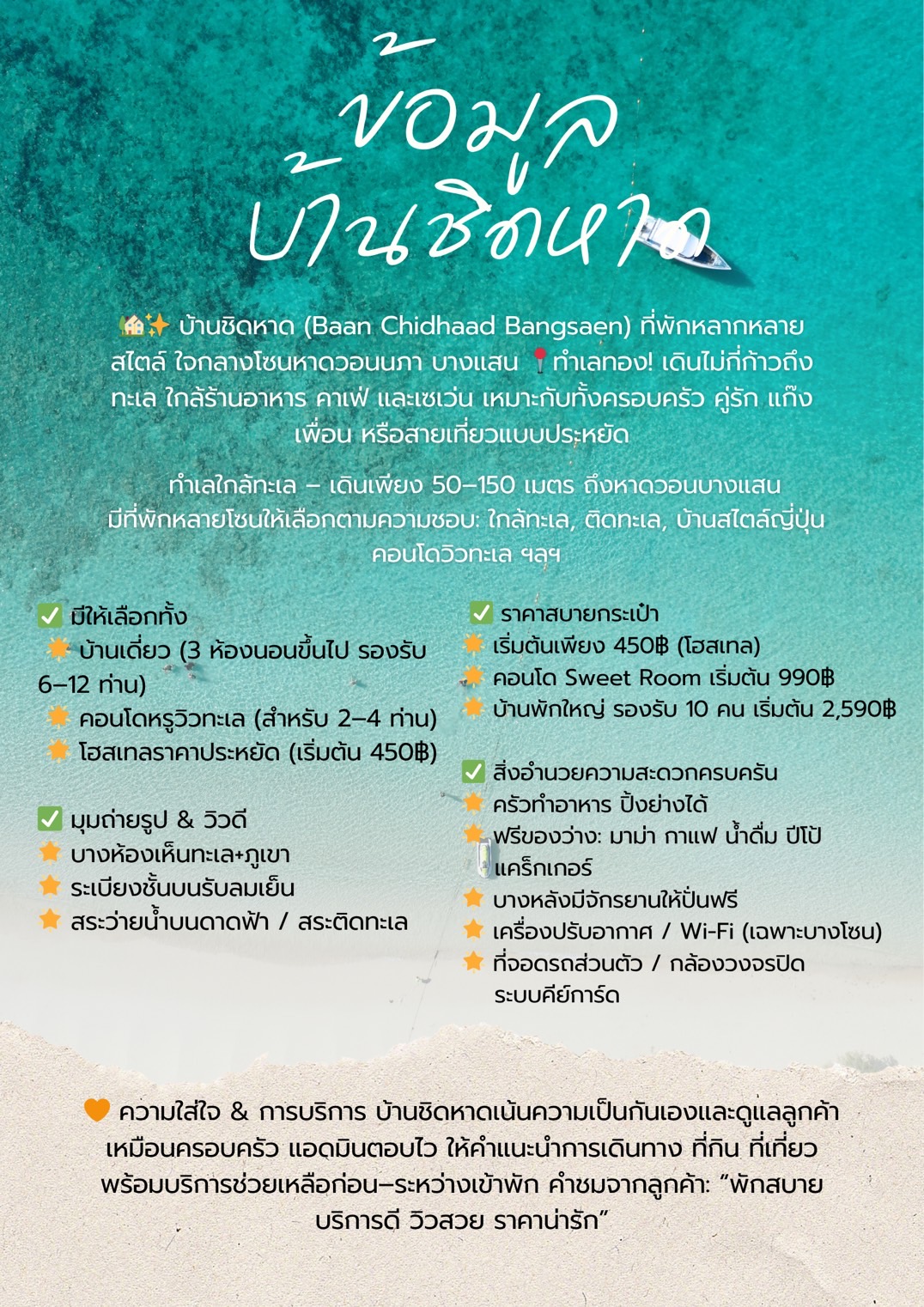 🏡✨ บ้านชิดหาด (Baan Chidhaad Bangsaen) ที่พักหลากหลายสไตล์ ใจกลางโซนหาดวอนนภา บางแสน 📍ทำเลทอง! เดินไม่กี่ก้าวถึงทะเล ใกล้ร้านอาหาร คาเฟ่ และเซเว่น เหมาะกับทั้งครอบครัว คู่รัก แก๊งเพื่อน หรือสายเที่ยวแบบประหยัด